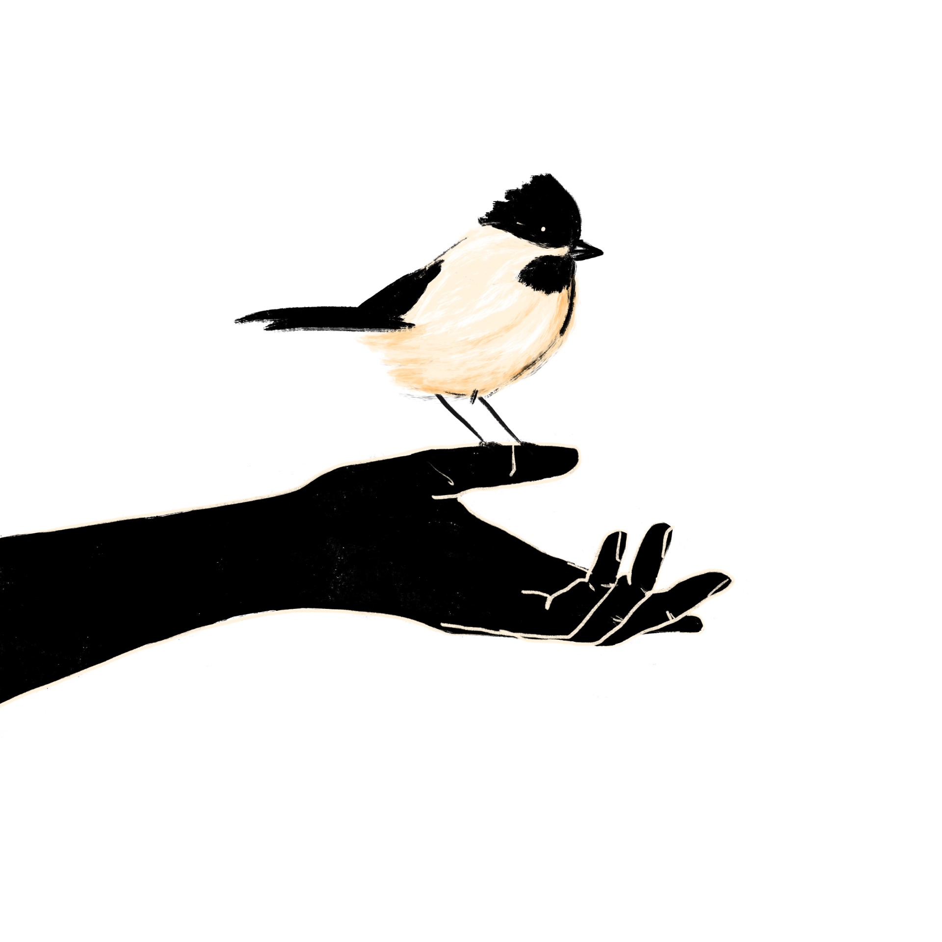 Tegelijkertijd is zo'n meesje een speels en vinnig vogeltje. Daarom staat de rouwmees voor mij symbool voor wat ik rond rouw en afscheid wil meegeven. Je hebt beide vleugels nodig om vooruit te gaan. De beweging tussen donker en licht.